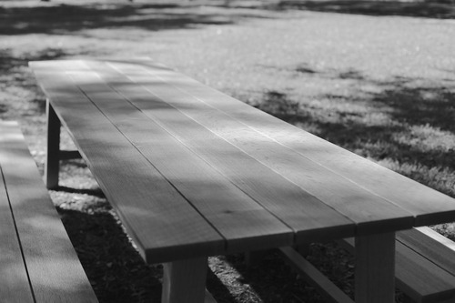 I built this picnic table because I love picnic tables. I have eaten so many terrible meals at picnic tables that I wouldn’t trade for the world. I built this table out of oak because that is what I remember those tables being made out of. They were left out in the rain; they were grey and cracked and excellent. Sitting at this table feels like seeing old friends.