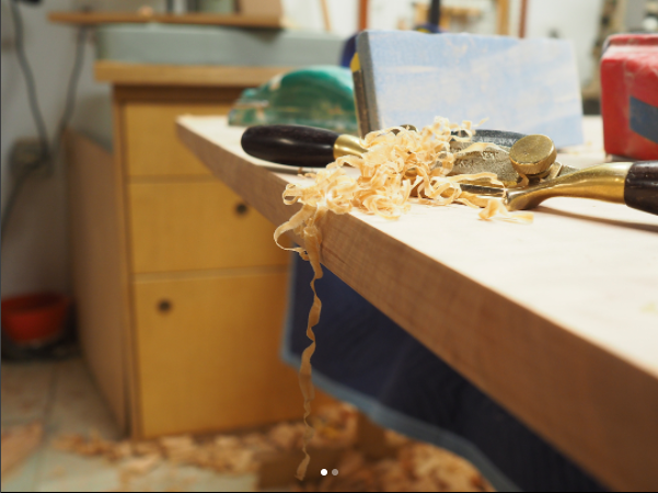 Profiling and softening the tabletop edges. One of my favorite parts of making a piece- trying to find the point between keeping things crisp without being sharp, and friendly without turning to mush. The way a piece feels under your fingertips is as important, to me, as the look and function of a piece. The mood and purpose of a piece should inform how it feels, and vice versa. It's one of the main reasons I work by myself, and (mostly) avoid production work- I know how I want things to feel, but it can be hard to explain to someone else, and is almost always impractical in a production setting. Mostly I just think things should feel nice.